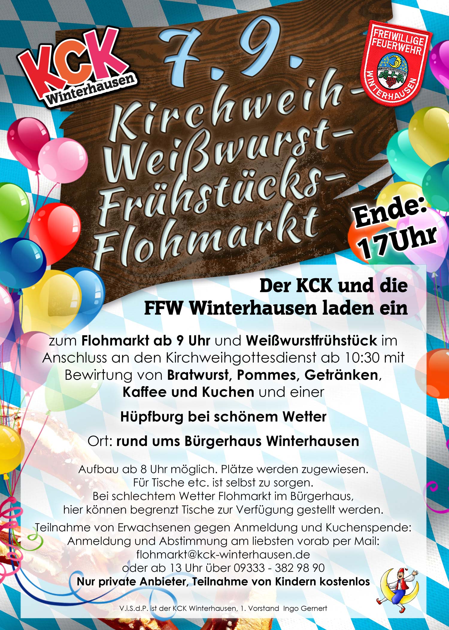 Herzliche Einladung zum Kirchweih Weißwurst-Frühstück Flohmarkt Winterhausen am 07.09.2025!